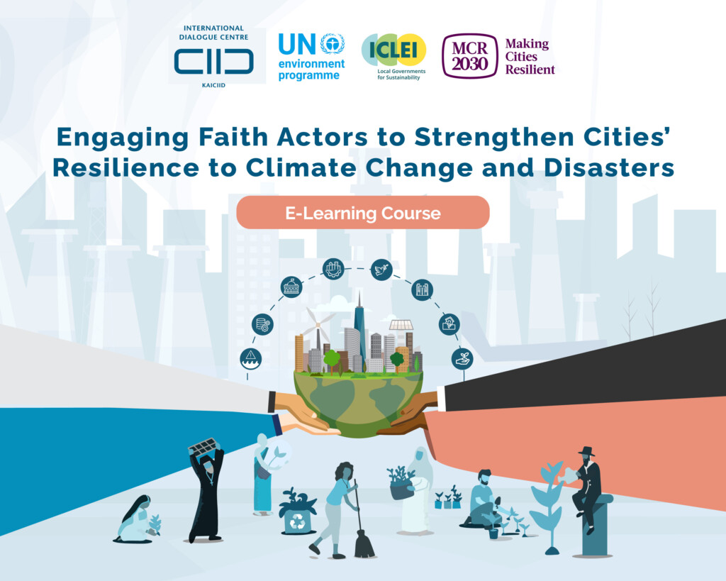 To address this need, KAICIID, in partnership with UNEP, ICLEI, and the MCR2030 Global Initiative, has developed a six-module learning resource. The modules cover: (1) faith-based approaches to city resilience and urban risk reduction; (2) interreligious and intercultural dialogue in support of the Sendai Framework, Paris Agreement, and SDGs; (3) scaling up community-level faith engagement in eco-DRR; (4) using the Disaster Resilient Scorecard to assess resilience gaps; (5) developing and monitoring resilient city action plans; and (6) frameworks for scaling faith-based approaches to strengthen city resilience..